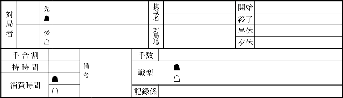 填寫先手與後手對局者的名字。通常會加入段級位、頭銜。