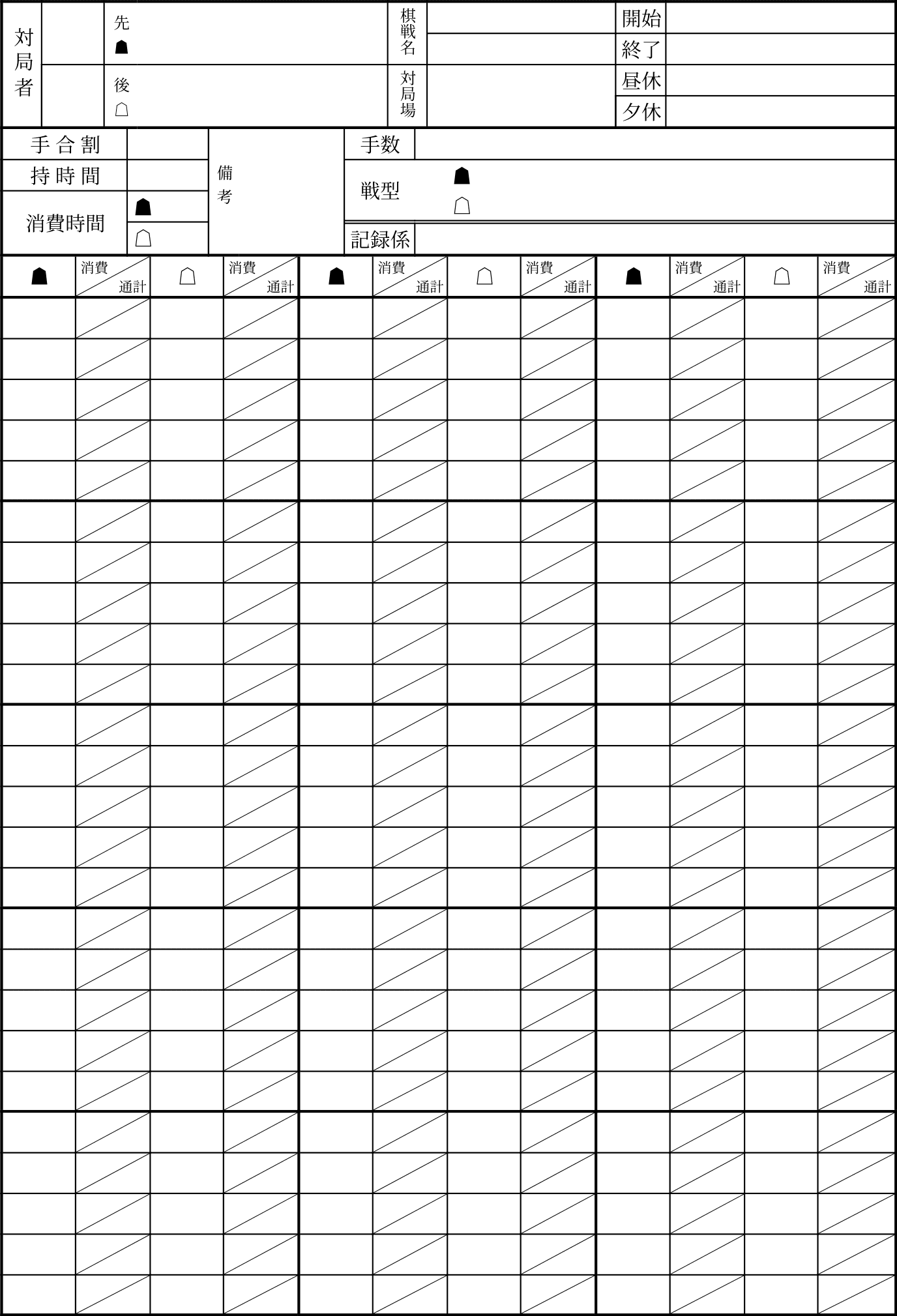 將 先手與後手的棋步,依序記入表格中。還可以在消費 / 總計,記入思考時間。如何記錄棋步?如果你沒有跳著看,只需按照前一篇記譜規則中學到的規則記錄就行啦!