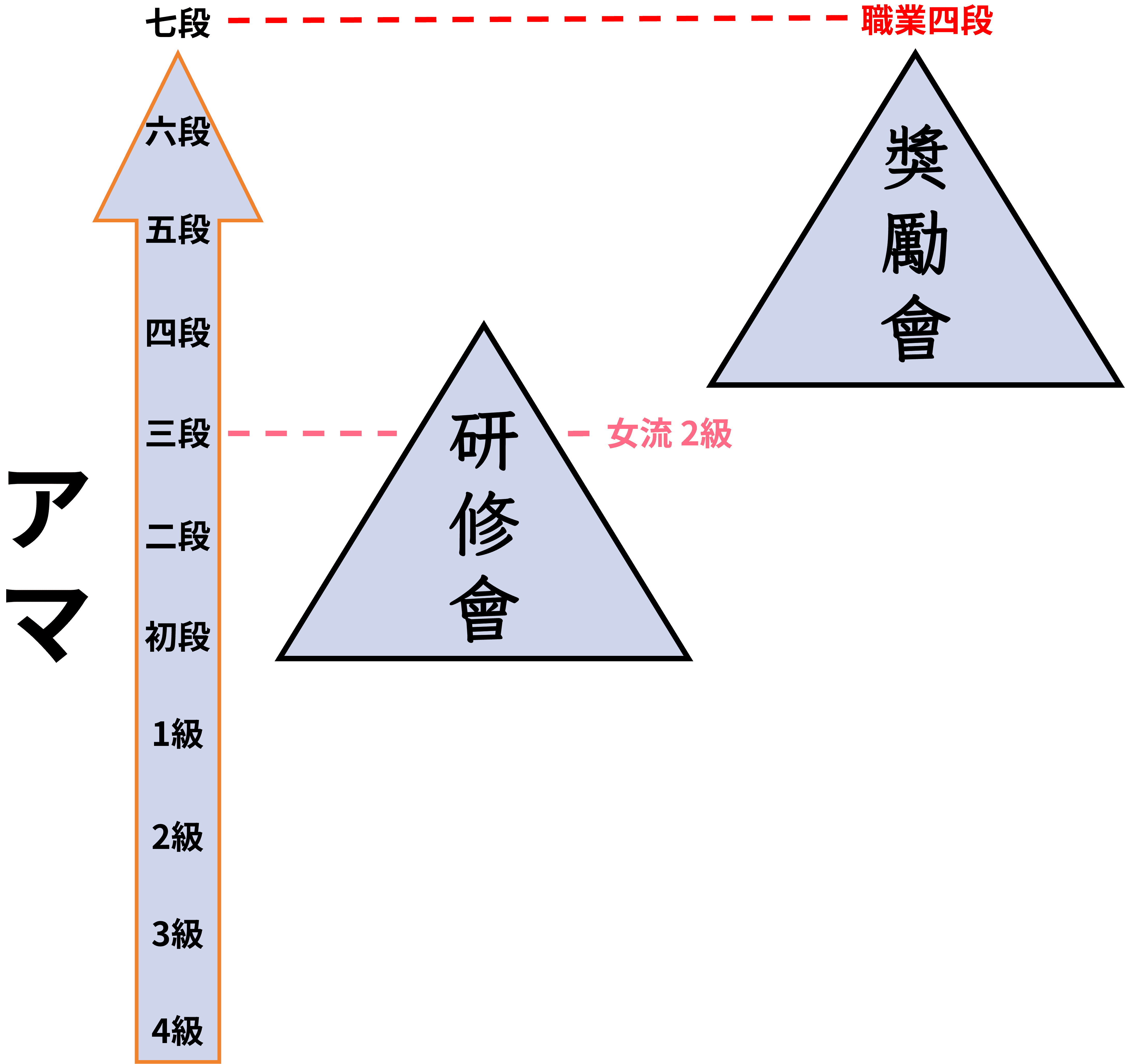 業餘四段 = 女流 2級 = 獎勵會 6級