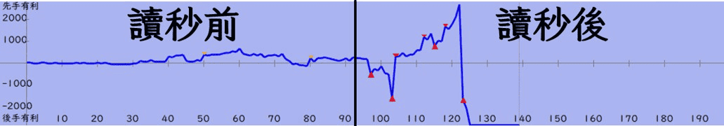 讀秒後,形勢圖關於棋譜分析,參考將棋軟體分析。